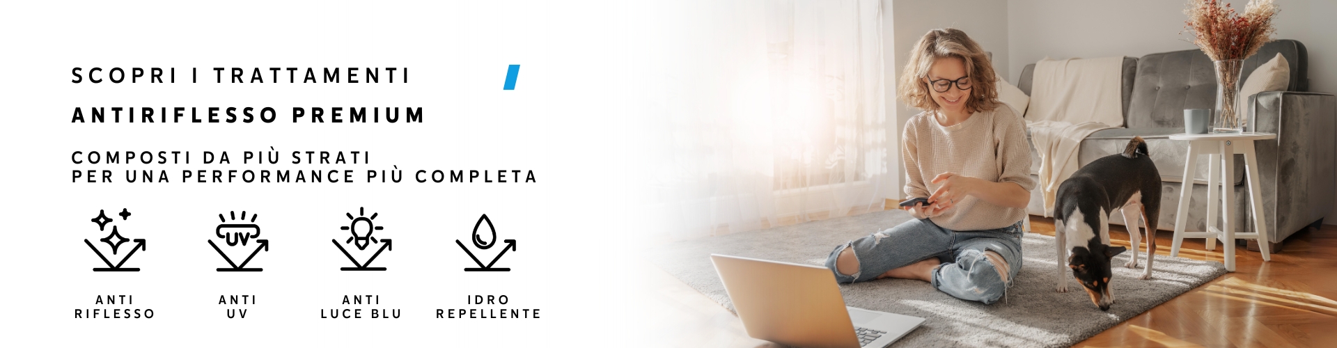 Le lenti, anche se trasparenti, riflettono una parte della luce, causando fastidiosi riflessi, soprattutto durante la guida notturna, davanti al computer o quando si parla con qualcuno. Il trattamento antiriflesso elimina questi riflessi, garantendo una visione più chiara e nitida, oltre a rendere le lenti più trasparenti e quindi esteticamente migliori. Specialmente per chi trascorre molte ore davanti agli schermi, il trattamento antiriflesso potenziato con filtro luce blu attenua l’impatto della luce sull’occhio, riducendo l’affaticamento visivo.