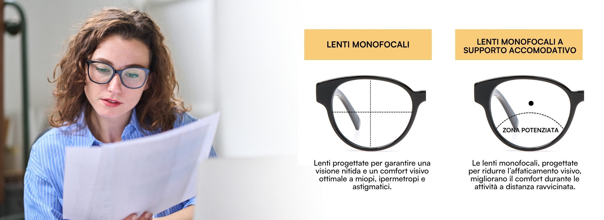 Sono lenti progettate per chi è soggetto a questo affaticamento, ideali per “supportare” appunto il nostro cristallino, accomodando al posto suo.