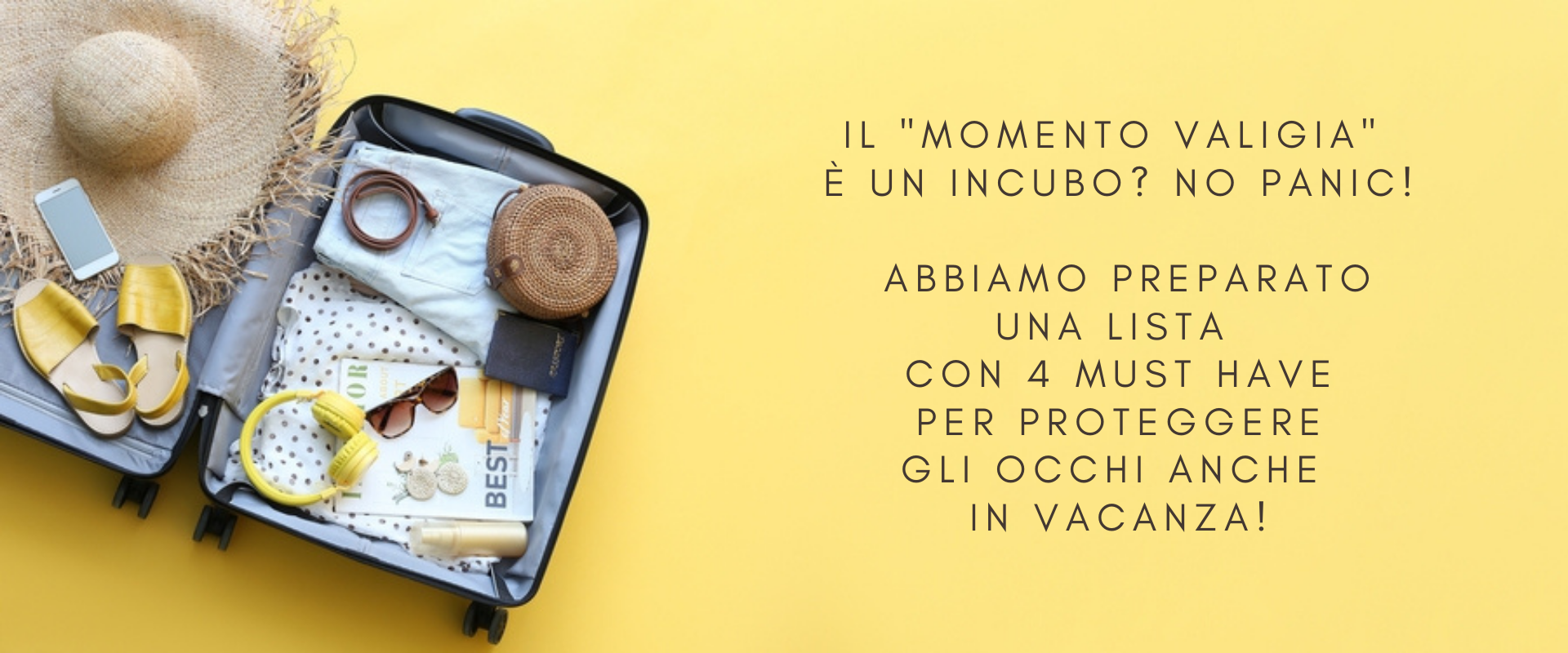 Ogni anno è sempre la stessa storia! Lo stress di cosa portare e l’ansia di dimenticare qualcosa di importante può trasformare il fatidico “momento valigia” in un incubo. No panic! Abbiamo preparato per voi una lista con 4 must have per proteggere gli occhi anche in vacanza, trascorrendo così dei giorni di relax e divertimento in totale sicurezza.