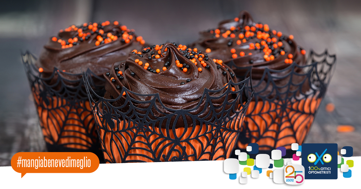 Se siete in cerca di dolcetti a tema da preparare per i vostri bambini o per i bambini che verranno a bussare alla vostra porta, vi proponiamo un’idea golosissima e facile da realizzare. Deliziosi muffin al cioccolato, arricchiti da una ganache di cioccolato fondente ricoperta da zuccherini neri e arancio, in puro stile Halloween.