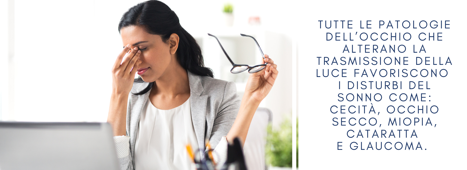 l’occhio non è soltanto l’organo che ci permette di ricevere informazioni visive dall’ambiente circostante tramite i fotorecettori della retina ma ha anche una funzione indispensabile nel registrare la luminosità ambientale che è il più importante sincronizzatore del nostro ritmo circadiano (responsabile del ciclo sonno-veglia). Il sonno è quindi un momento fondamentale della nostra giornata per il mantenimento del benessere psico-fisico poiché ha ripercussioni sulla nostra vita quotidiana, lavorativa, sociale e sul mantenimento del nostro stato di salute generale. Se dormiamo bene, siamo più energici, creativi, sereni, attivi ed affrontiamo le varie sfide giornaliere con maggiore grinta e lucidità.