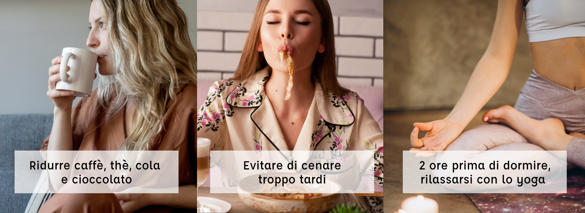• Evitare di cenare troppo tardi e di andare a letto a stomaco pieno