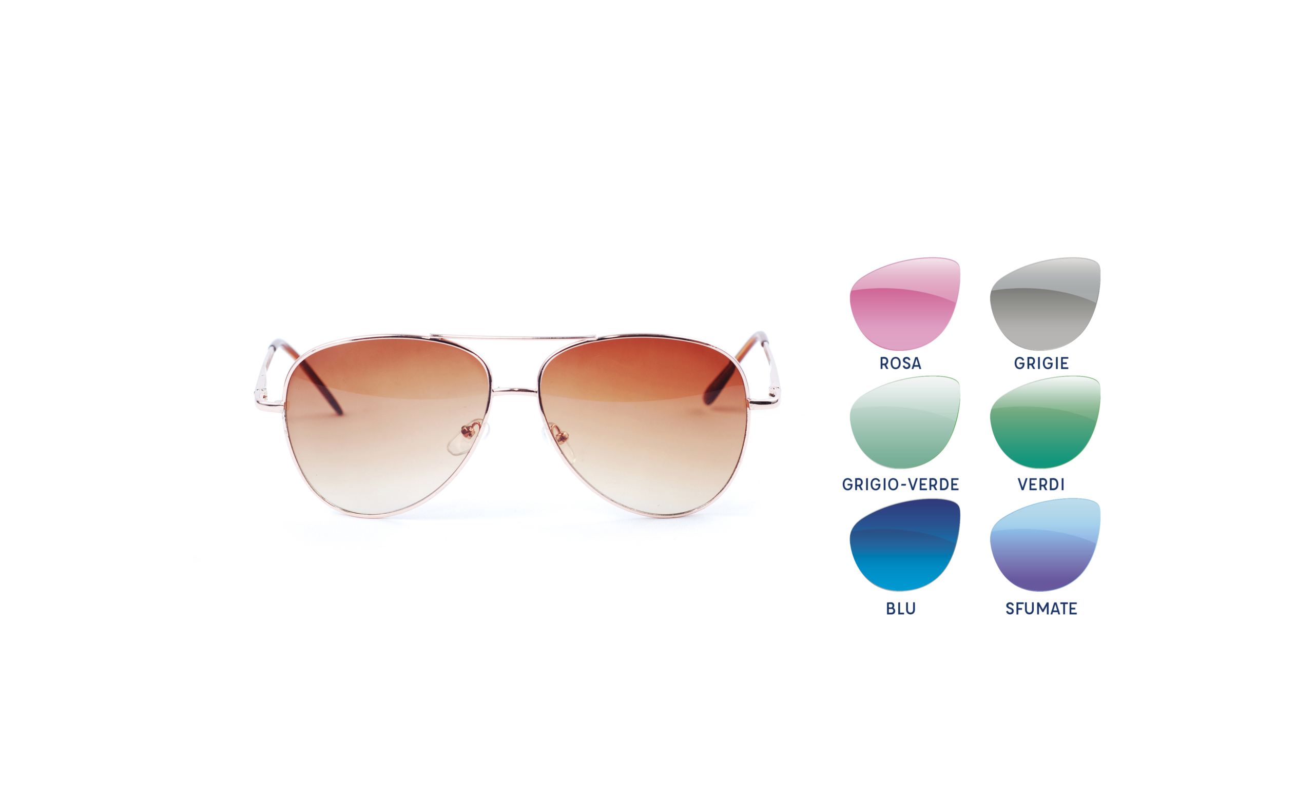 LENTI SFUMATE. Queste lenti, scure sopra e chiare sotto, garantiscono una visione ottimale in qualsiasi condizione di luminosità. Confortevoli durante la guida e per un look di tendenza. Disponibili anche in colori pastello.