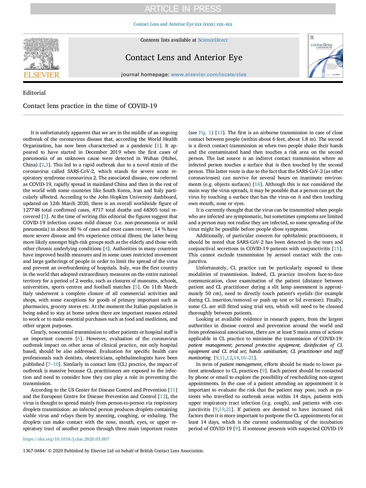 Gli ottici e contattologi nell’esercitare la loro professione si trovano ad una distanza ravvicinata con i pazienti ed utilizzano strumenti che vanno a contatto con gli occhi, una delle principali vie di trasmissione del virus da un individuo all’altro insieme a naso e bocca. A tal proposito, come riportato all’interno dell’articolo “Contact lens practice in the time of COVID-19” pubblicato dall’ottico-optometrista Fabrizio Zeri e dall’editore Shehzad A. Naroo sulla rivista “Contact Lens and Anterior Eye” (https://www.contactlensjournal.com/), si possono evidenziare cinque comportamenti specifici che il contattologo ed i portatori sono tenuti ad adottare.