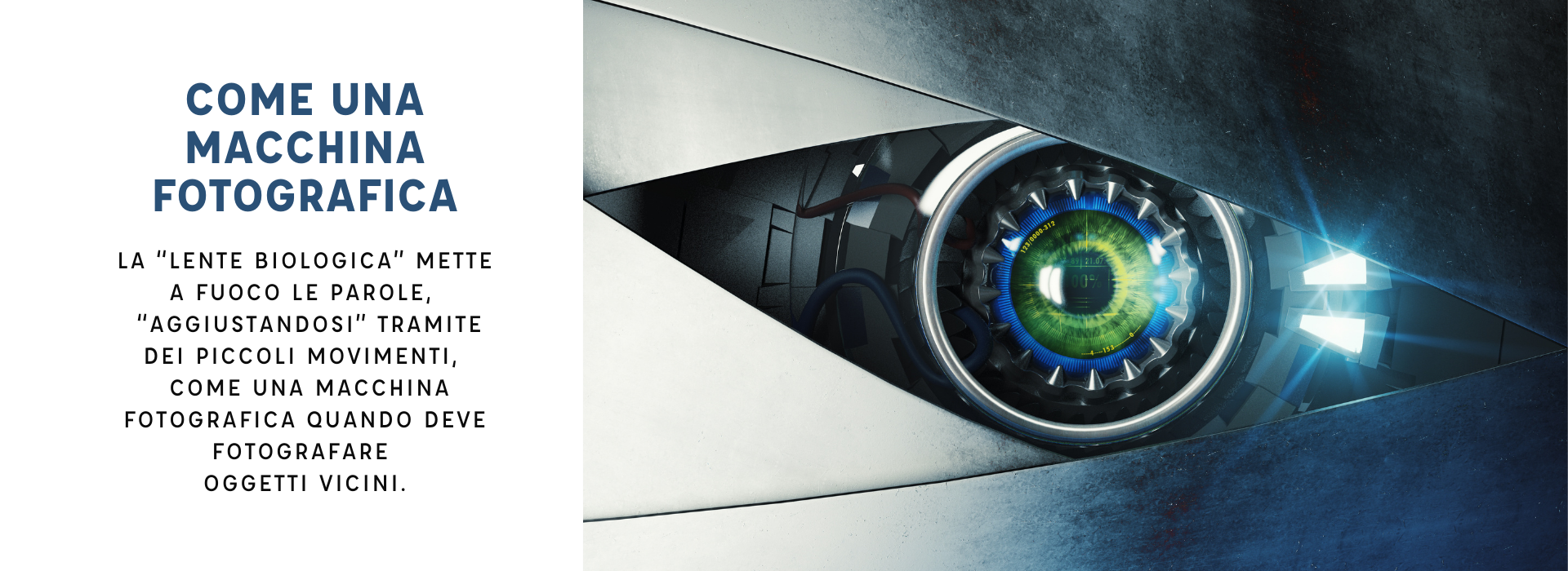 Infatti, durante la visione da vicino, la nostra “lente biologica” mette a fuoco le parole, “aggiustandosi” tramite dei piccoli movimenti, come una macchina fotografica quando deve fotografare oggetti vicini. Questi micro movimenti, regolati da muscoli detti “ciliari”, prendono il nome di accomodazione. Una iperattività di questi muscoli, causata da lunghe ore di lettura ravvicinata (cellulare/pc), può determinare delle contrazioni che permangono più del previsto/necessario.