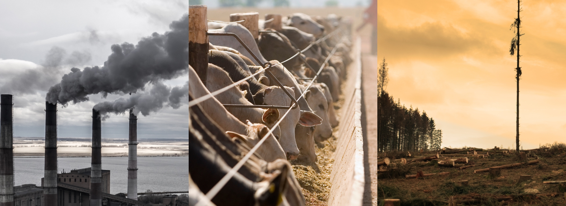 • Attività agricole intensive. Massimizzare la produzione a basso costo può scatenare conseguenze disastrose. Lo sfruttamento eccessivo delle risorse naturali e l’uso eccessivo di prodotti nocivi come i fertilizzanti mettono a rischio la biodiversità e aggravano il cambiamento climatico. Anche l’allevamento intensivo contribuisce negativamente. I bovini e gli ovini, infatti, producono grandi quantità di metano durante il processo di digestione.