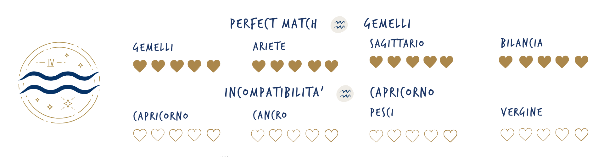 L’aria dell’Acquario non è quella frizzante primaverile dei Gemelli o quella nostalgica dell’autunno tipica della Bilancia, piuttosto quella dell’alta montagna in inverno, calda quando c’è il sole, gelida dopo il tramonto. Sarà per questo che la vostra personalità è mutevole. Liberi, anticonformisti, in continua evoluzione, il vostro motto è “per non rimanere indietro bisogna essere sempre un passo avanti”.
