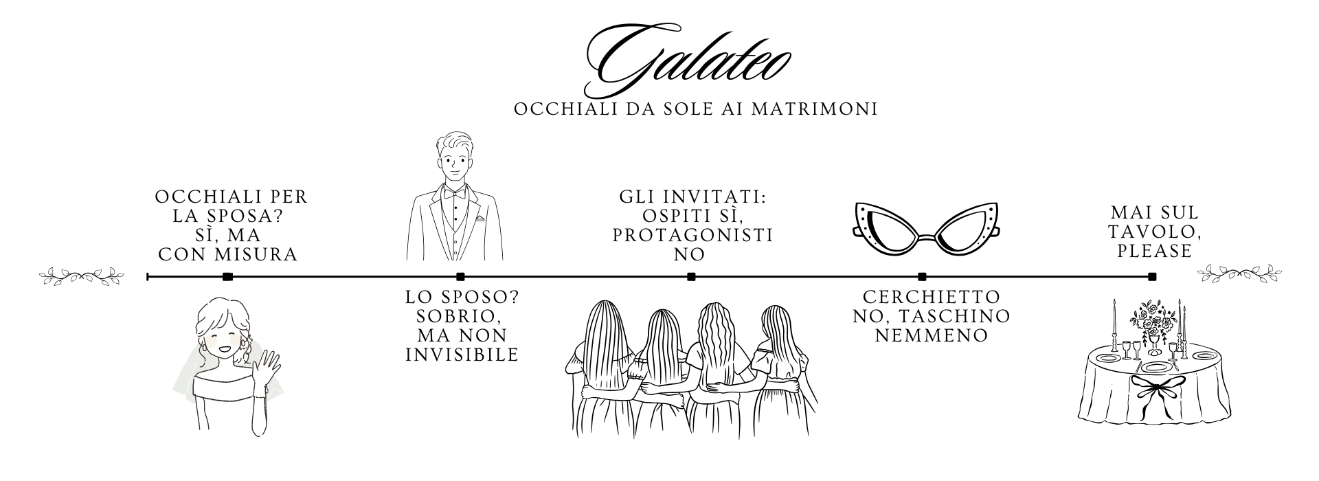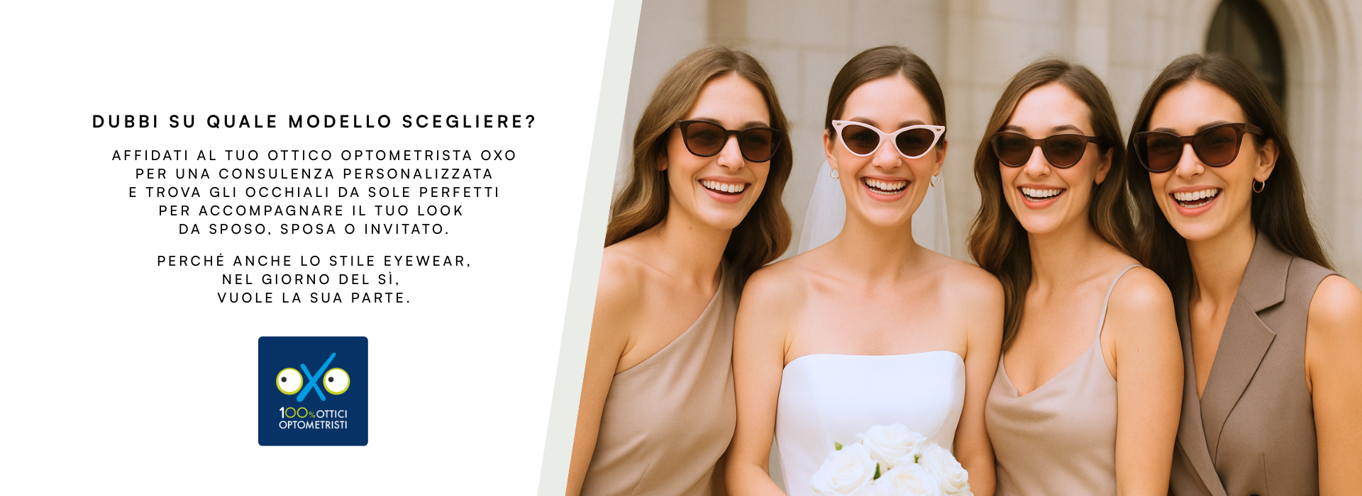 Gli occhiali da sole a un matrimonio sono come l’eleganza vera: non devono abbagliare, ma valorizzare. Come in una coppia ben assortita, il segreto sta nell’armonia.