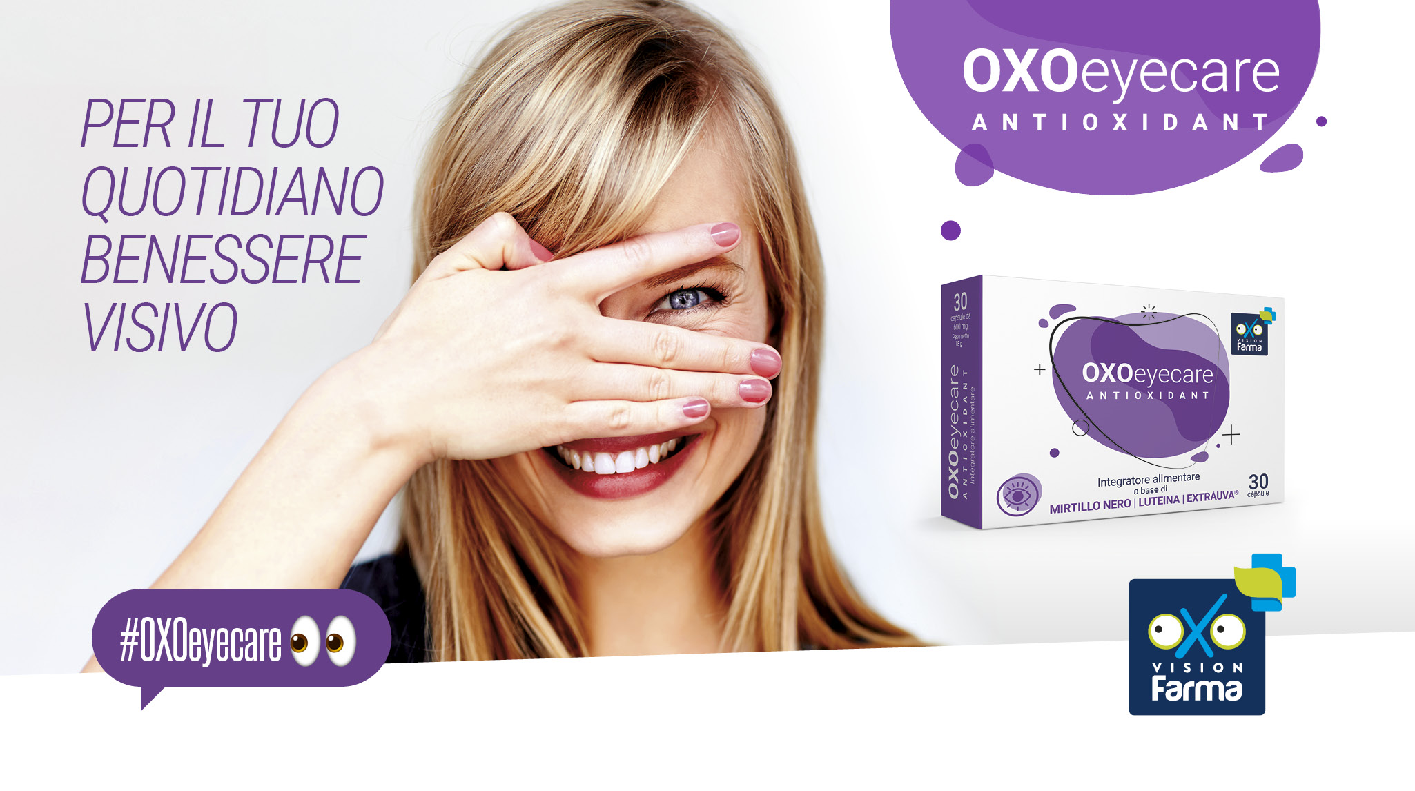 Per soddisfare le nuove esigenze di consumo, OXO presenta un nuovo integratore alimentare OXOeyecare ANTIOXIDANT, prodotto da Farmalabor. Prendersi cura dei propri occhi è una priorità fondamentale per avere un buon comfort visivo. Ogni giorno gli occhi sono sottoposti ad affaticamento, inquinamento e all’esposizione prolungata ai dispositivi digitali. OXOeyecare ANTIOXIDANT vanta una formulazione esclusiva a base di Mirtillo nero e Extrauva®, che aiutano a combattere l’azione dei radicali liberi, e Vitamina A ed E che contribuiscono alla protezione delle cellule contro lo stress ossidativo. OXOeyecare ANTIOXIDANT, un aiuto naturale per il quotidiano benessere visivo. Presto nei centri ottici OXO!!!