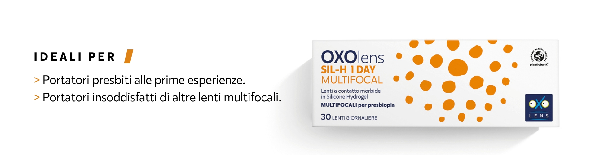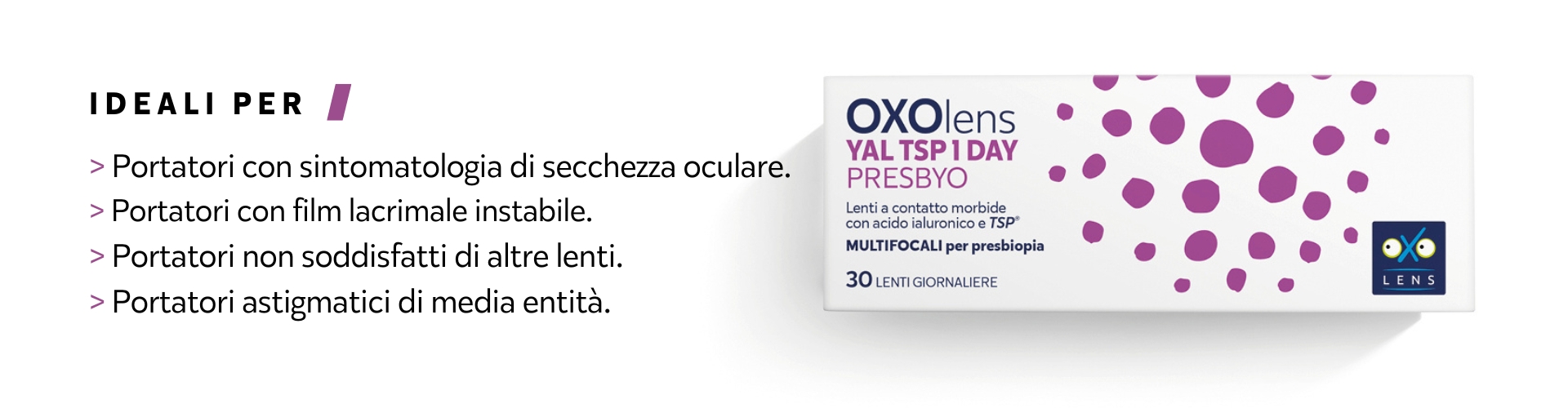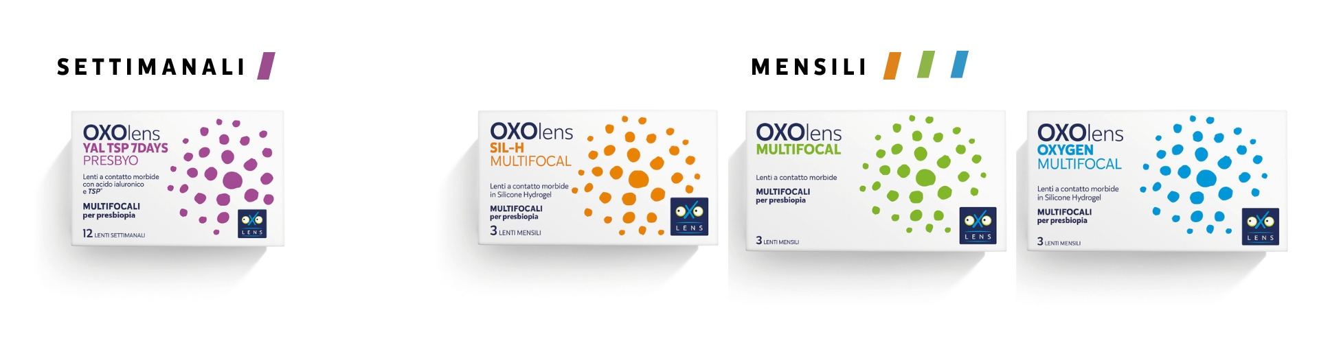 • Settimanali: OXOLens YAL TSP 7 DAYS PRESBYO con acido ialuronico e TSP®.