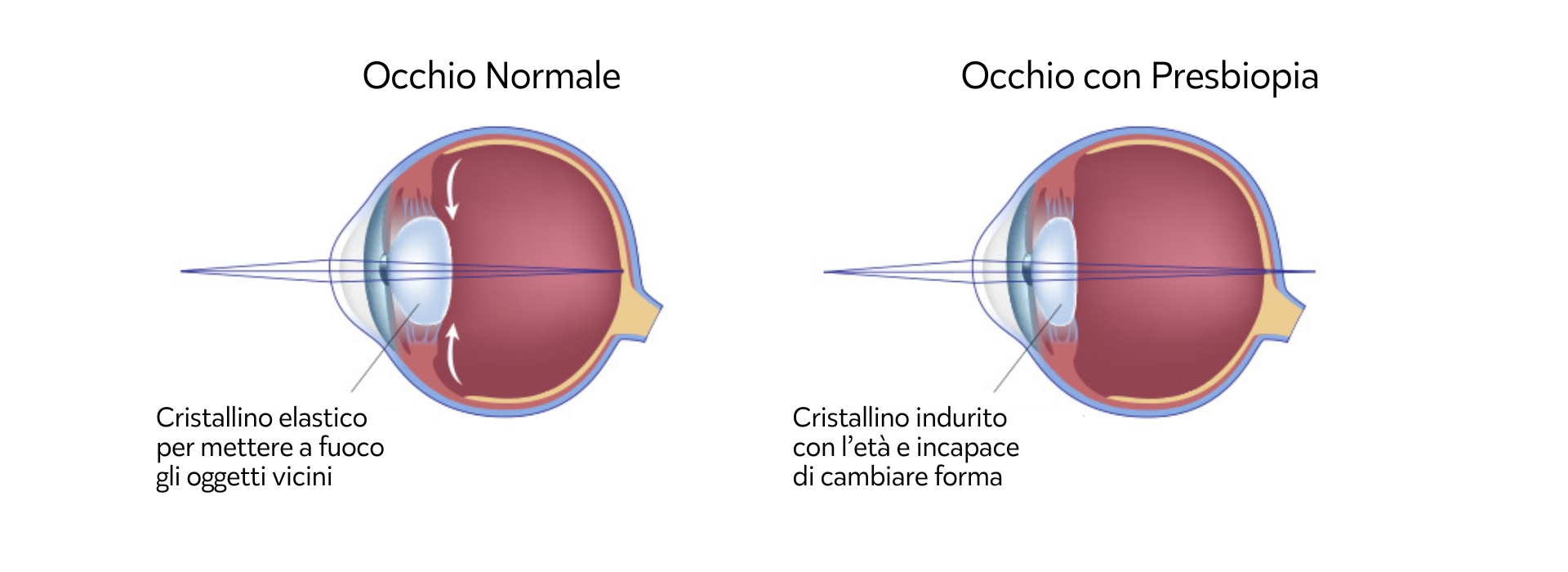 Di cosa si tratta? Innanzitutto niente panico, è una condizione fisiologica del nostro cristallino, che si evolve con il tempo e l’avanzare dell’età. Infatti, con il passare degli anni, i piccoli muscoli del nostro cristallino, i quali ci aiutano a mettere a fuoco gli oggetti da vicino, iniziano a essere più rigidi e quindi a non poter “aggiustare” la nostra “lente” (cristallino) per mettere a fuoco a distanze molto ravvicinate.