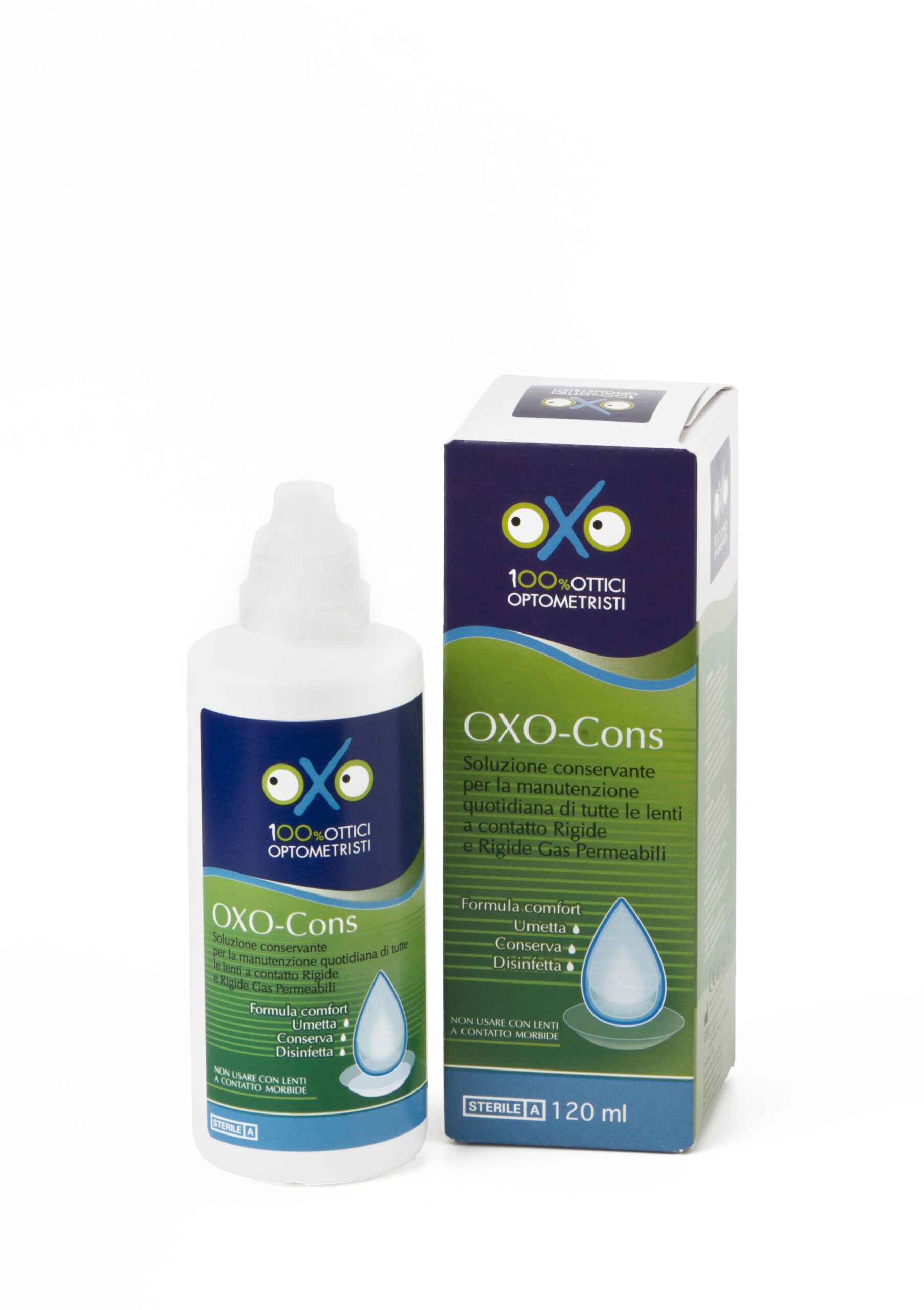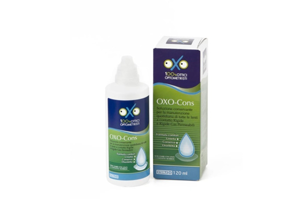 Oxo-Cons è la soluzione conservante per la manutenzione quotidiana di tutte le lenti a contatto rigide e rigide gas permeabili (RGP).