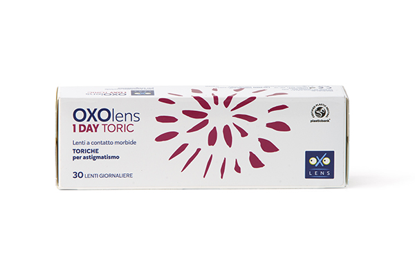 OXOLens 1 day Toric è una lente a contatto morbida torica a ricambio giornaliero che corregge l’astigmatismo associato a miopia o ipermetropia