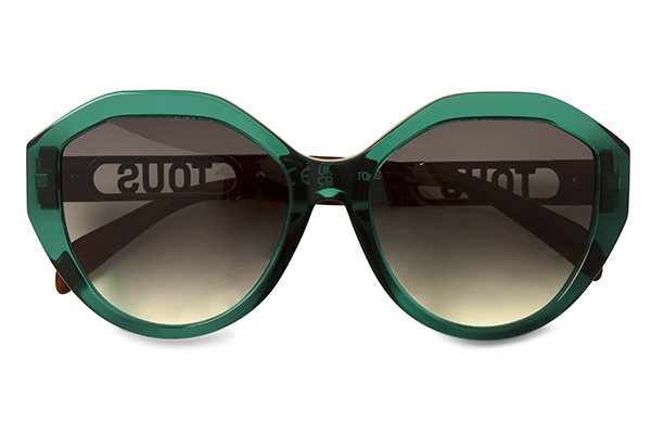 Occhiali da sole in acetato dalla forma leggermente esagonale.