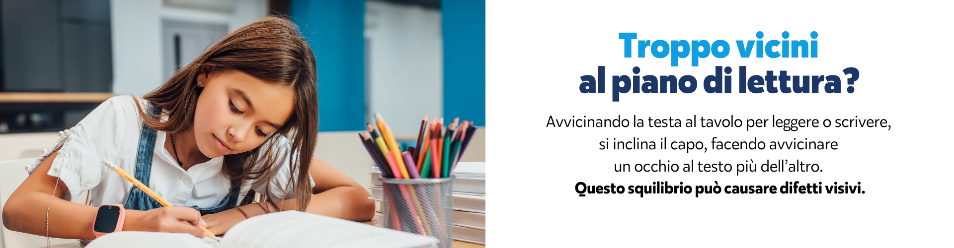 Tra le cattive abitudini più comuni c’è quella di avvicinare la testa al tavolo per leggere e, soprattutto, per scrivere, inclinando la testa e portando un occhio più vicino al testo rispetto all’altro. Questo squilibrio, a lungo andare, potrebbe contribuire allo sviluppo di difetti visivi.