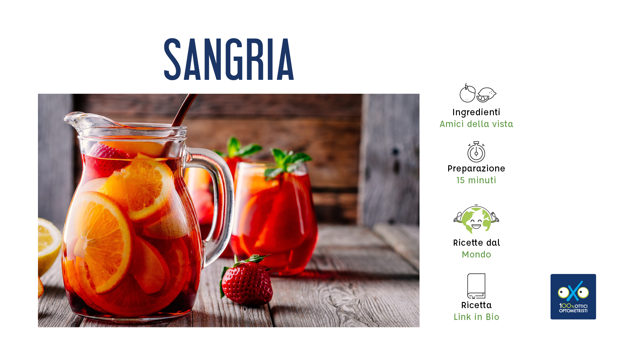 Direttamente dalla Spagna, una ricetta perfetta per l’estate: la sangria, un drink dal sapore dolce e brioso e dal colore rosso intenso. Deve il suo nome proprio a questa caratteristica: la parola Sangria, infatti, deriva dallo spagnolo “sangre”, sangue. Grazie all’irresistibile mix di vino e frutta fresca, è conosciuta ed apprezzata in tutto il mondo, specialmente in estate. Un cult irrinunciabile da bere come aperitivo o come bibita dissetante nelle calde serate con gli amici.