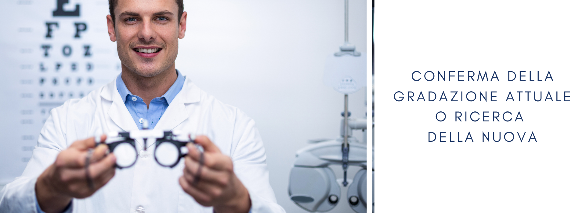 Conferma della gradazione attuale o ricerca della nuova: In quest’ultima fase si utilizza il forottero o un occhialino di prova, per confermare la gradazione attuale o la nuova trovata.