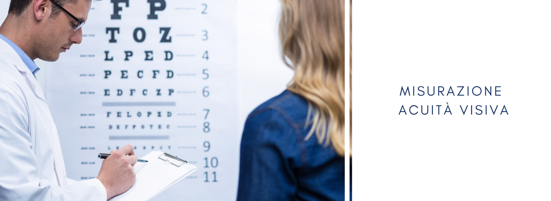 Misurazione Acuità Visiva: si prosegue con la classica tabella di Snelle: quella con lettere di diverse dimensioni, utilizzata per avere un quadro qualitativo della vista, misurato in decimi 10/10. Può essere misurata da vicino o da lontano in base alle esigenze personali. Se si è già portatori di occhiali o lenti a contatto, questo test andrà effettuato con la gradazione in uso.