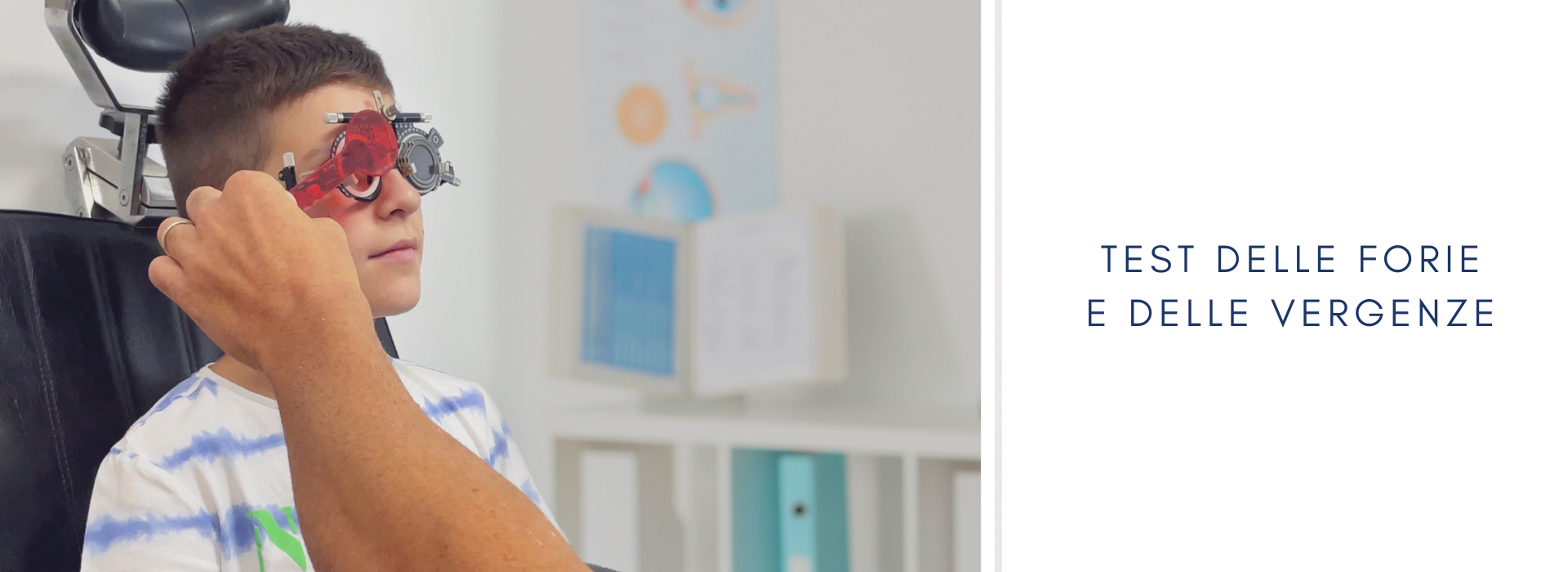 Test delle forie e delle vergenze: Le “forie” sono deviazioni latenti dello sguardo, che se non compensate dalla giusta convergenza degli occhi, possono portare a mal di testa, occhi rossi e affaticamento generale visivo (astenopia). È giusto effettuare questo test in presenza dei sintomi sopra riportati.