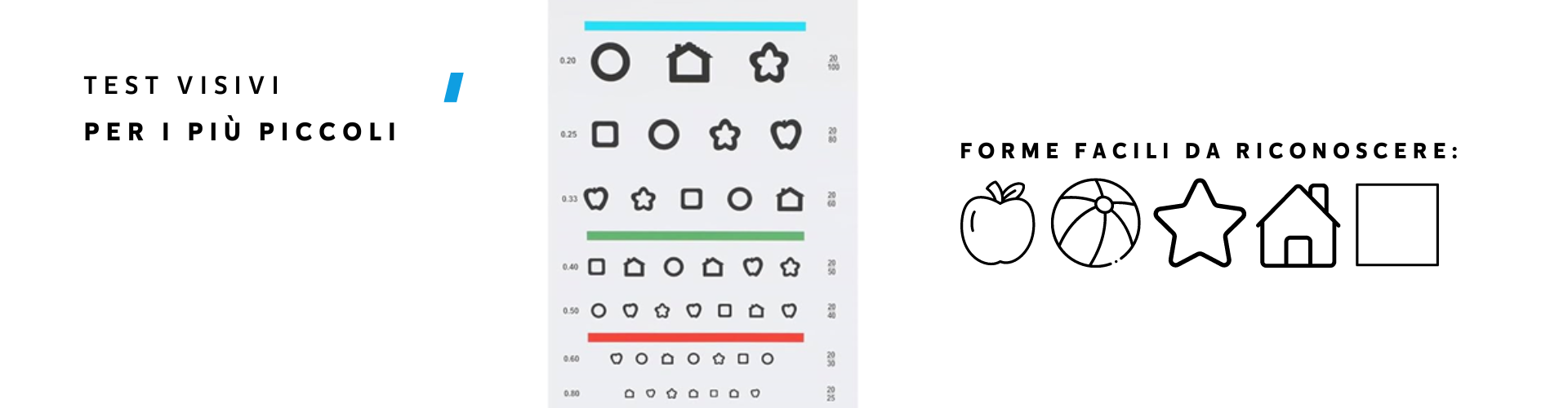 Un rimedio c’è, e sono i test visivi “illustrativi”, ovvero immagini di oggetti reali, resi giocosi per coinvolgere anche i bambini al riconoscimento delle forme.